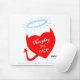 Funny Split Personnalité Naughty Nice Cartoon Heart Mouse Pad avec un coeur unique avec des cornes de diable rouge et un halo d'ange bleu fait un deuxième cadeau mignon ou le rembourrage pour votre femme ou votre petite amie.