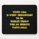 Un message humoristique est écrit en gras jaune contre un arrière - plan noir. Il dit : "Votre appel est très important pour nous. Profitez de cette flûte de 20 minutes en solo."