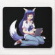 Un foxgirl bleu-haired d'anime travaille sur un ordinateur portable.
