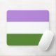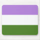 Le drapeau de la fierté des genderqueer est un design Marilyn Roxie, esthétiquement similaire aux drapeaux gais et lesbiennes, bisexuels, transgenres, asexuels et pansexuels; c'est-à-dire, des barres horizontales de couleur avec un sens spécial. La signification des couleurs dans la conception du drapeau de la genderqueer sont les suivantes : Lavender représente androgynes et androgyny. Représente également le "queer" dans le genre, car la lavande est une couleur qui a longtemps été associée à la "queerness", y compris les communautés gaies, lesbiennes et bisexuelles. Le blanc représente l'identité sexuelle, en accord avec le blanc neutre du genre sur le drapeau de la fierté transgenre. Dark Chartreuse Green : L'inverse de la couleur lavande ; représente l'identité du "troisième genre", c'est-à-dire ceux dont les identités sont définies en dehors et sans référence au binaire.