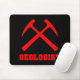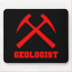 Géologue - style collégial rouge lettrage et marteaux de roche croisés graphique avec un arrière - plan noir.