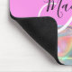 Nom monogramme irisé holographique de l'arc-en-ciel et pavé de souris initial. Votre nom personnalisé et votre monogramme sont écrits dans un élégant script écrit à la main avec un arrière - plan rose. Un cadeau d'anniversaire ou de Noël parfait !