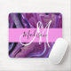 Glam abstrait violet, lilas et violet brillent de texture liquide nom monogramme et pavé de souris initial. Votre nom personnalisé et votre monogramme sont écrits dans un élégant script écrit à la main avec un arrière - plan rose. Un cadeau d'anniversaire ou de Noël parfait !