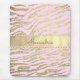 Un imprimé zèbre doré à l'ombre sur un fond rose et brillant, accompagné d'un ruban brillant et chatoyant avec une bordure en collier de perle où vous pouvez le personnaliser. Chic glam branché.