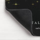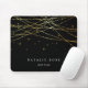 Chic mousepad personnalisé affiche votre nom, nom d'entreprise ou choix de texte personnalisé en lettres blanches classiques sur un riche arrière - plan noir sillonné de brins de faux fils de feuille d'or.