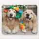 Se sentir super ? Ce mousepad comporte deux chiens de golden retriever dehors, souriant et portant l'habillement teint noué de port.