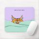 Un chat tabby orange qui regarde sur des couvertures couleur menthe pour regarder leur être humain dans l'espoir de les réveiller brillamment et tôt