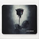 Un mousepad sombre et mystérieux avec une illustration cool d'un rose noir style goth/emo avec du sang coulant rouge sur ses pétales. Un arrière - plan noir grunge avec une couleur blanc cassé au centre qui met en évidence ce rose moody et macabre.