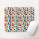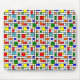 Ce pavé de souris a une conception Bauhaus d'une grille avec carrés et rectangles en rouge, vert, bleu, orange, bleu clair, jaune et rouge.