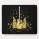 Caractéristiques de conception musicales de style d'imaginaire une guitare à ailes d'or avec des accents et des notes scolling de musique.