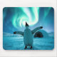 Tapis De Souris Happy Penguin Dancing Under Northern Lights