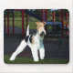 Fox Terrier de fil jouant en parc. Conception originale et colorée.