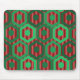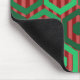 Ce tapis de souris a un design géométrique d'hexagones dans quatre nuances de vert sur un champ de rayures dans deux nuances de rouge.