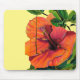 Conception d'aquarelle par l'artiste Sacha Grossel d'hibiscus orange tropical. Couleurs vives et vibrantes d'orange et de vert. Thèmes d'art floral tropical