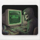 Turn your workspace into a command center with this Cyberpunk Skeleton Mousepad. Featuring a vivid illustration of a skeletal coder bathed in the green glow of a CRT monitor, displaying the ultimate loop: if (hope <= 0) { still.Try(); }.
