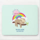 Une souris avec une illustration montrant une drôle de paresse brune qui paresse joyeusement sur une branche d'arbre. Un arc-en-ciel coloré derrière lui, accompagné d'un soleil rose planant sur la tête. Mignonne, adorable et tendance. Un peu d'humour avec le texte disant : Mode de fente Activé. Peut être changé ou personnalisé avec un nom ou un autre dicton si vous le souhaitez.