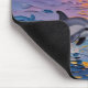 An ai impasto style dolphins swimming with a pink, orange and purple sunset over the ocean . A beautiful coastal mousepad to add a beachy touch to your desk..