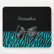 Une mignonne et tendance mousepad imprimé zèbre avec des rayures modernes noir et turquoise de zèbre et orné d'un ruban imprimé noir girly. Personnalisez en ajoutant votre nom à ce design féminin noir et turquoise chic. Parfait pour la fashionista stylisée dans n'importe quelle fille ado!