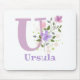 Le design présente un monogramme & un nom avec des fleurs de chaque côté dans un style pastel à l'aquarelle. Le nom exemple est Ursula. Peut être pour n'importe qui avec un nom commençant par U.