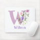 Le design présente un monogramme & un nom avec des fleurs de chaque côté dans un style pastel à l'aquarelle. Le nom exemple est Wilma. Peut être pour n'importe qui avec un nom commençant par W.