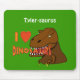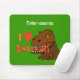 Ce tapis de souris de mousepad de conception d'amant de dinosaure a un brun de bande dessinée, image effrayante de dinosaure de Rex de Tyrannosaurus. Il mange le mot "dinosaures" dans "moi aiment des dinosaures" avec ses longues, pointues dents. Le "amour" est une forme de coeur.