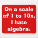 Ce que je déteste Algebra mousepad est pour les gens qui aiment l'algèbre. Ha ! Je plaisante. Ce serait idiot ! Non, c'est pour les 99yx% d'entre nous qui ne comprennent pas ce que les lettres font en maths. Le design de la bouche-sepad comporte un arrière - plan rouge vif et une écriture blanche et audacieuse qui dit : "Sur une échelle de 1 à 10, je déteste l'algèbre." Lettres en maths. À qui était cette idée brillante ?