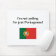 Un mousepad avec le drapeau portugais et l'énonciation "je suis ne hurlant pas moi suis simplement portugais !"
