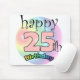 Gelukkige 25ste verjaardag muismat Leuk als rendus voor iemand die vijfentwintig is geworden. Regenboog kleuren. 25 est à de kleur roze.