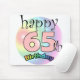 Gelukkige 65ste verjaardag muismat Leuk als rendus voor iemand die vijfenzestig est geworden. Regenboog kleuren. 65 est à de roze kleur.