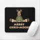 Un orignal en bottes de randonnée et un pull vert et le texte qui dit "Joyeux Chris-Moose" est présenté sur ces cartes de voeux, boutons, magnets, sacs fourre-tout, T-shirts et plus.