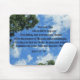 Beau ciel bleu avec des nuages bouffants et des branches d'arbres verts au premier plan, avec la Bible Verse de bénédiction : Maintenant à Celui qui est capable de vous empêcher de tomber, et de vous présenter sans faute devant la présence de Sa gloire avec une joie extrême, au seul Dieu sage notre Sauveur, soyez gloire et majesté, domination et pouvoir, maintenant et jamais. Amen. Jude 1:24-25