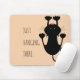 Tapis De Souris Juste accroché là dessin animé de chat noir texte