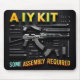 Une image en haute résolution qui frappe visuellement et présente un AK-47 démonté contre un arrière - plan noir élégant. Les composants des armes à feu sont soigneusement arrangés, en mettant l'accent sur leurs détails complexes. Le texte audacieux mais humoristique, "do-it-yourself Kit : Certains assemblages requis", ajoute une touche ludique à l'esthétique technique, rendant l'image à la fois attrayante et divertissante. Parfait pour les amateurs qui apprécient l'intersection de l'ingénierie de précision et de l'humour !