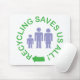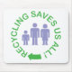 Les silhouettes bleues d'un homme, d'une femme et d'un enfant entourés par la légende "réutilisant nous sauve tous" en cercle sur le T-shirts du jour de la terre des hommes, les chemises du jour de la terre des femmes, les chemises de jour de la terre d'enfants, les boutons de jour de la terre, les tabliers, les porte - clés et plus de cadeaux. Également les grands cadeaux pour l'Amérique réutilise le jour en novembre.