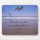 Les mouettes volent au-dessus de l'océan et des textes spéciaux disent design sur le sable.