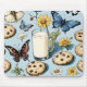 Tapis De Souris Lait et biscuits à fleurs et papillons bleu
