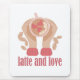 Tapis De Souris Latte et coupe d'amour, mains et citation de café
