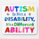 Message positif de "AUTISM Is Not a Disability, It's a Different ABILITY" avec de beaux casse-têtes d'autisme pour comprendre et éduquer sur les personnes atteintes de troubles du spectre autistique et le syndrome d'Asperger.
