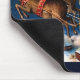 Décorez votre bureau avec un tapis de souris vintage avec du charme de Noël comportant le père noël montant son traîneau complètement des jouets au-dessus d'une ville d'hiver.