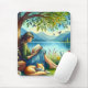 Tapis De Souris Lecture d'un livre sous un arbre avec un chat endo