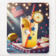 Un grand verre de limonade est décoré d'étoiles américaines sur le thème du drapeau et d'un drapeau avec des citrons et des rubans festifs