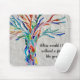 Ce tapis décoratif de souris comporte un arbre en mosaïque aux couleurs de l'arc-en-ciel et les mots : "Où serais-je sans un ami comme vous ?" Parce que nous créons notre oeuvre, vous ne trouverez pas cette image exacte d'autres designers. Mosaïque originale © Michele Davies.