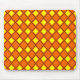 Ce pavé de souris a une conception des années 1970 de diamants jaunes solides à l'intérieur des contours de diamants bruns sur un champ d'orange.