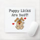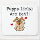 Un mignon chien brun avec sa petite langue pendante, les coeurs rouges, et le texte noir qui dit "Les léchettes de chiot sont les meilleurs !" sur les T-shirts, sweat - shirts à capuche, sacs fourre-tout, cartes, autocollants, boutons, tasses, et plus encore.