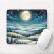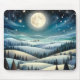 Un paysage hivernal serein se déroule sous la lueur d'une pleine lune, avec des collines ondulées recouvertes de neige et parsemées d'arbres à feuillage persistant foncés. Les étoiles scintillent dans le ciel nocturne profond, ajoutant une touche magique à la scène paisible. Ce paysage d'imaginaire est orné d'une pleine lune qui illumine une campagne couverte de neige hivernale, de collines, d'arbres et d'un ciel étoilé.