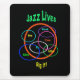 Pour ceux qui aiment le jazz, ce mousepad est une célébration même du meilleur du be-bop et des ères de courrier-coup de poing. Les cercles colorés de rouge, de bleu, de pourpre, le blanc et la turquoise enferment certains des grands musiciens. Tout est placé par le texte jaune et vert sur un arrière - plan noir pur.