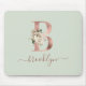 Tapis De Souris Lettre "B" en or rose floral Monogramme Vert sauge