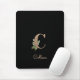 Élégant pavé de souris noir dispose d'un monogramme botanique doré au centre.