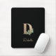 Élégant pavé de souris noir dispose d'un monogramme botanique doré au centre.