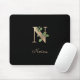 Élégant pavé de souris noir dispose d'un monogramme botanique doré au centre.